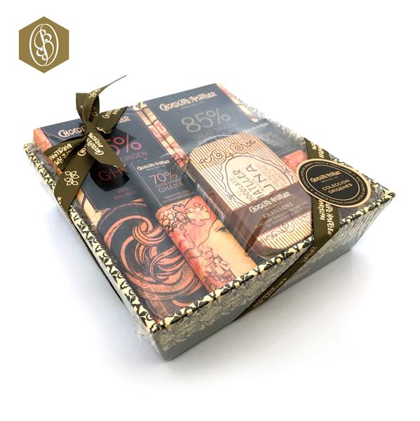 Lovers of chocolate and Barcelona, this article will love you.From Bye Buy Barcelona we bring you a very special basket; an assortment of four types of Amatller chocolates, a delight for those in love with dark chocolate.Chocolate Amatller is an icon of Barcelona. He started making chocolate in the year 1797 in the Born neighborhood and, currently, they are already in the sixth generation of chocolate masters. Your shop, on the prestigious Passeig de Gràcia street, is a must for people visiting Barcelona.The secret of this masterpiece lies in three factors: selection of top quality ingredients, innovation in the production...